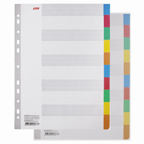 Набор картонных разделителей листов формата А4. Универсальная перфорация подходит для всех видов папок и имеет 11 отверстий. Выступающие цветные табуляторы дополнительно укреплены УФ-лаком. Набор картонных разделителей листов формата А4. Эти практичные аксессуары пользуются большой популярностью, как у студентов, так и офисных работников. Они позволяют систематизировать внутреннее пространство блочных тетрадей, помогают организовать и классифицировать офисные документы в папках-регистраторах или скоросшивателях. Универсальная перфорация подходит для всех видов папок и имеет 11 отверстий. Выступающие цветные табуляторы дополнительно укреплены УФ-лаком. Новинки имеют индивидуальную упаковку в пленку, которая служит дополнительной защитой от внешних неблагоприятных воздействий.