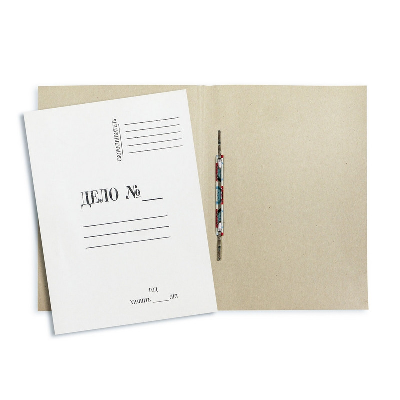 Папка-скоросшиватель «Дело №-» формата А4 изготовлена из белого мелованного картона (плотность 380 г/кв.м). Оснащена металлическим механизмом сшивания, скоросшиватель крепится с внешней стороны. Длина усиков составляет 45-50 мм. Вместимость - до 150 листов стандартной плотности. Папки-скоросшиватели упакованы в гофрокороба по 200 штук. Стоимость указана за штуку.