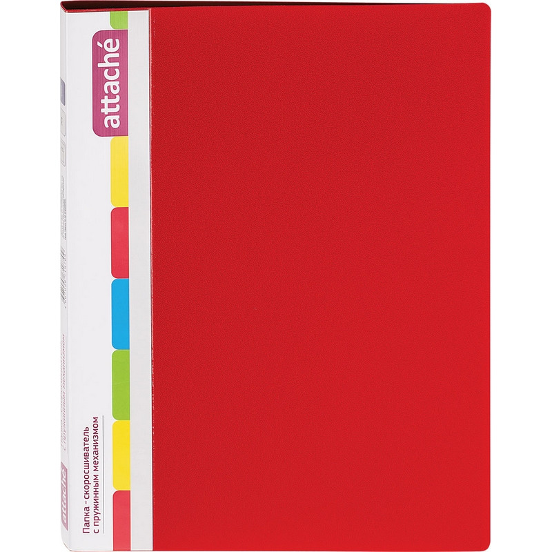 Папка-скоросшиватель Attache формата А4 изготовлена из пластика красного цвета, толщиной 0,7 мм. Оснащена пружинным механизмом подшивания. На внутренней стороне обложки есть прозрачный карман для документов, компакт-дисков, визиток. Ширина корешка - 17 мм. Папка вмещает около 150 листов стандартной плотности.