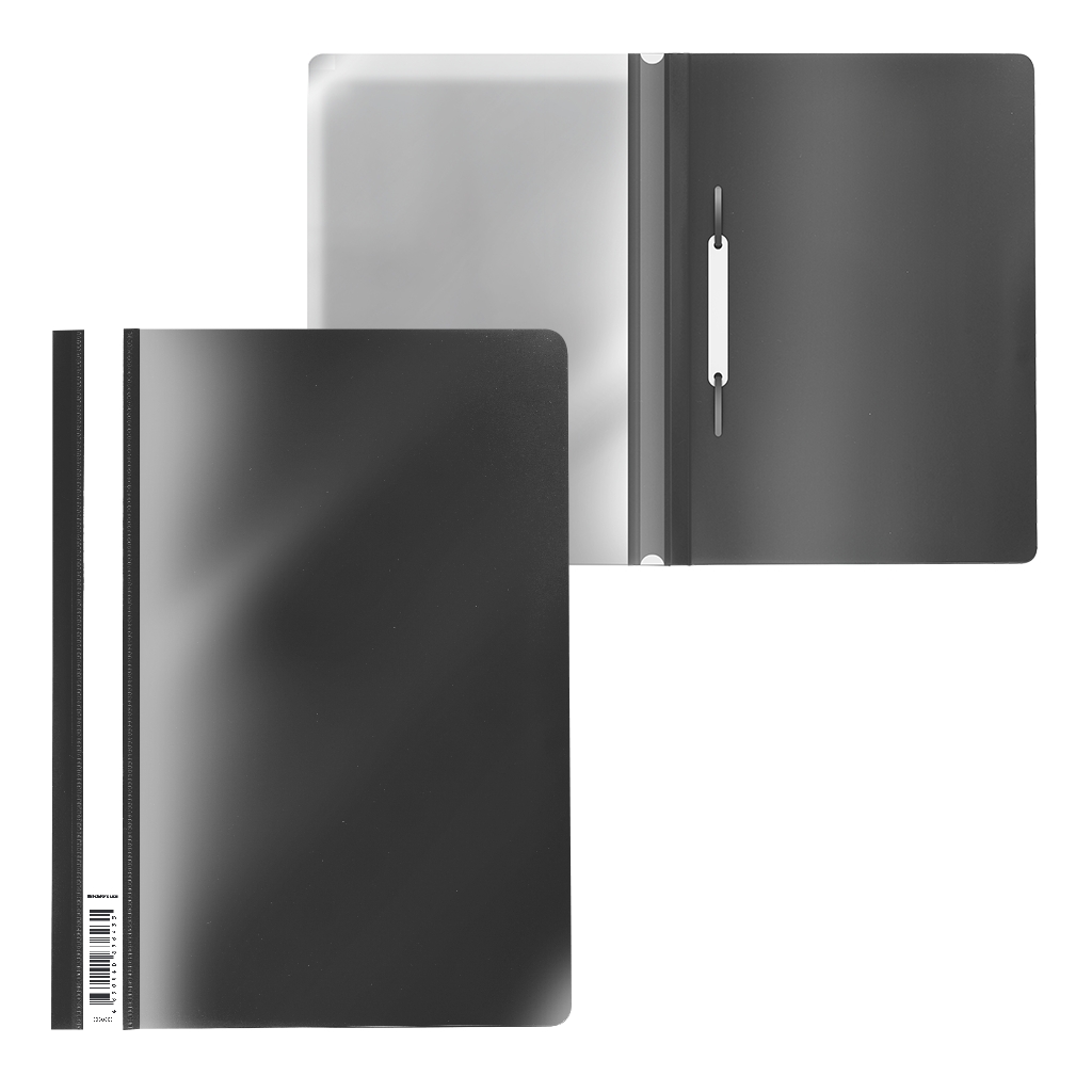 Папка-скоросшиватель пластиковая формата А4 из высококачественного пластика с текстурой поверхности "апельсиновая корка", на которой не видно отпечатков пальцев и мелких царапин. Предназначена для быстрого сшивания, хранения и просмотра документов. Цвет папки – черный. Механизм - механический скоросшиватель. Папка вмещает до 130 бумажных листов. Размер - 312х230 мм, толщина - 0.14 мм.