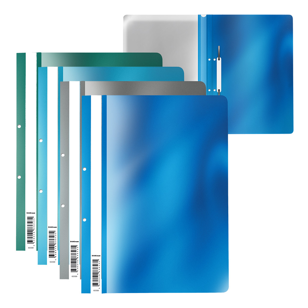 Папка-скоросшиватель с перфорацией пластиковая Erich Krause Glossy Ice Metallic, A4, ассорти (в пакете по 20 шт.)