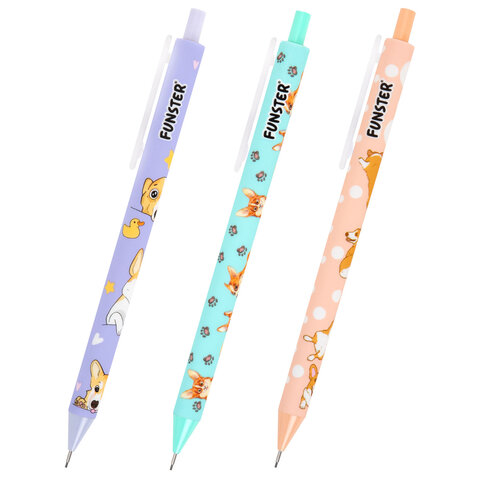Карандаш механический 0,7 мм с принтом FUNSTER (ФАНСТЕР) "CORGI", корпус soft-touch ассорти, 182060