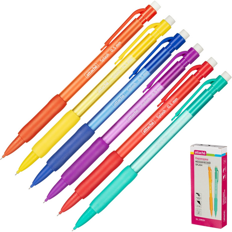 Карандаш механический Attache Splash, 0,5мм, корп.тонир.ассорти, с манжет