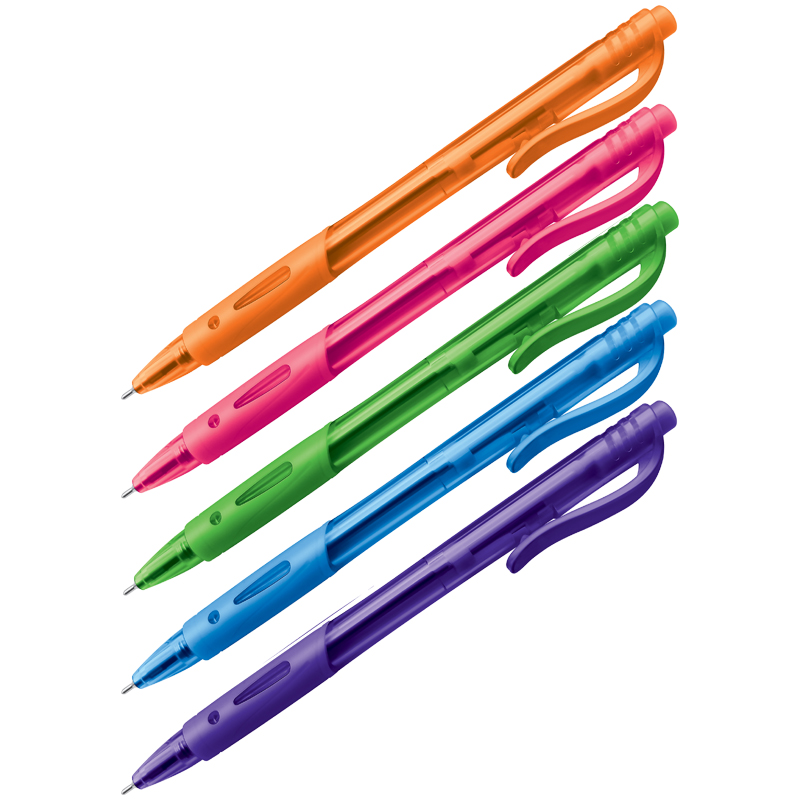Автоматическая шариковая ручка с кнопочным полуавтоматическим механизмом. Удобный резиновый грип. Полупрозрачный тонированный корпус в 5 цветах. Наличие штрихкода на единице товара.