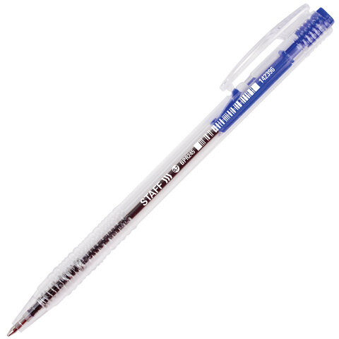 Ручка шариковая автоматическая STAFF, СИНЯЯ, корпус прозрачный, узел 0,7 мм, линия письма 0,35 мм, 142396