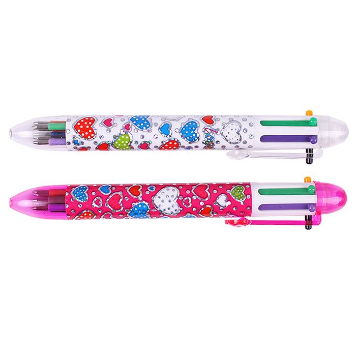 Ручка автоматическая 6-ти цветная "Darvish" корпус ассорти с рисунком сердечки
