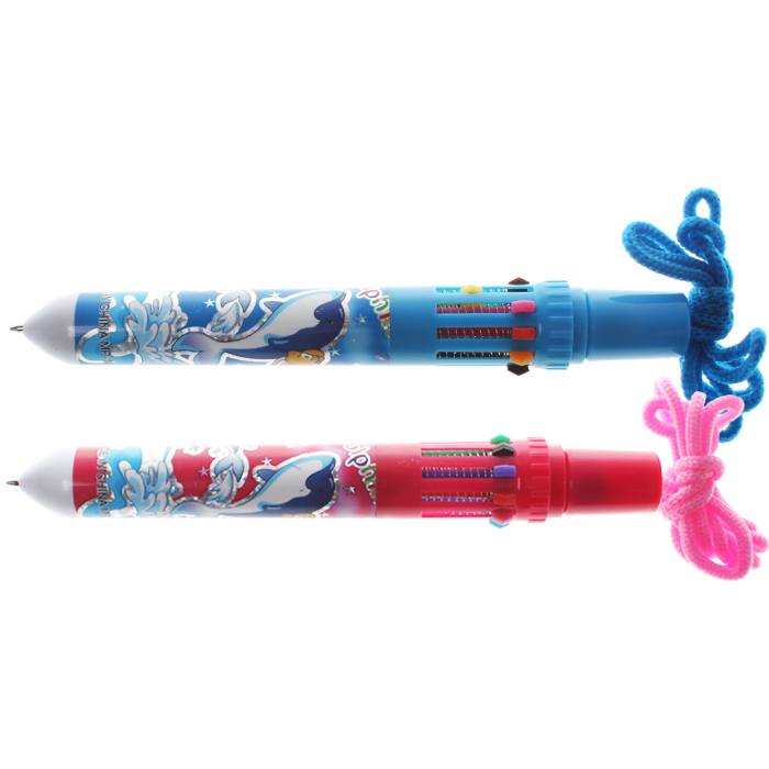 Ручка автоматическая 10-ти цветная корпус ассорти с рисунком дельфины на шнурке "Darvish"