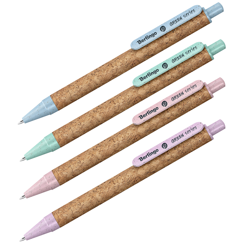 Ручка шариковая автоматическая Berlingo "Green Series" 0,7мм, синяя, корпус с пробковым покрытием