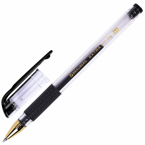 Ручка гелевая с грипом BRAUBERG "EXTRA GT GLD", ЧЕРНАЯ, стандартный узел 0,5 мм, линия 0,35 мм, 143919
