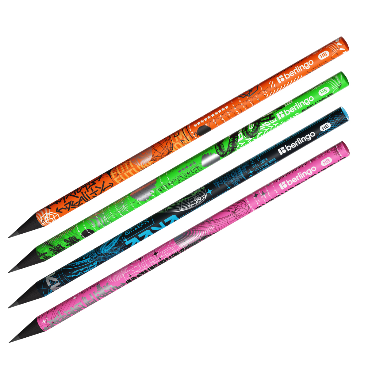 Карандаш чернографитный Berlingo "Future Tech" HB, черное дерево, круглый, заточен., ассорти