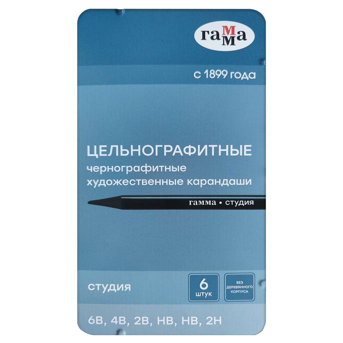 Набор карандашей цельнографитных ч/г Гамма "Студия" 6шт., 6B-2H, метал. упаковка