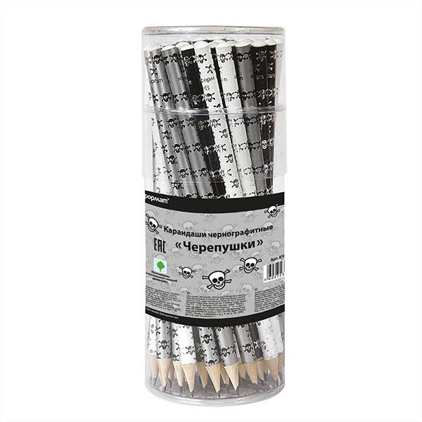Карандаш чернографит. ЧЕРЕПУШКИ НВ заточенный круглый, в тубусе 48 шт./уп.: КЧ-НВ-ЧЕР штр.: 4602723025634