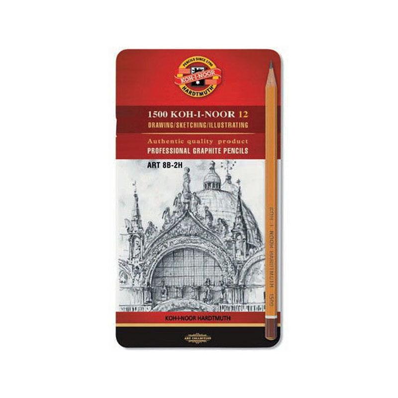 Набор карандашей ч/г "1500 ART" 12шт., 8B-2H, заточен., метал. пенал: 1502012008PL