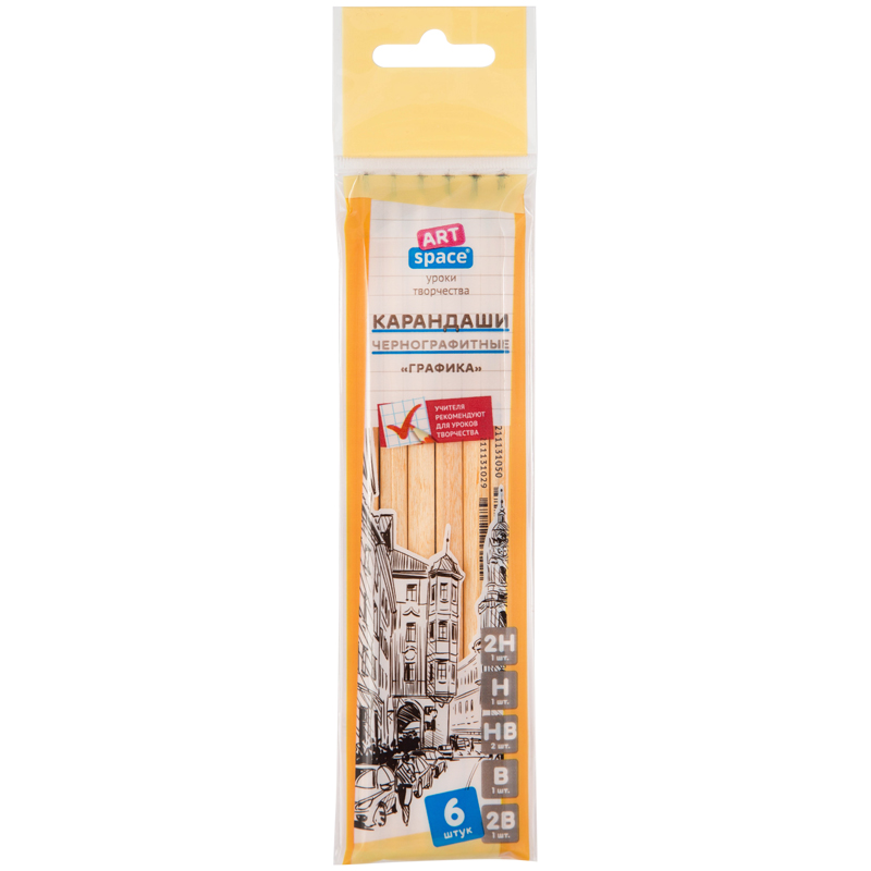 Набор карандашей ч/г ArtSpace "Графика", 6шт., 2H-2B, заточен., пакет, европодвес HY009_15113