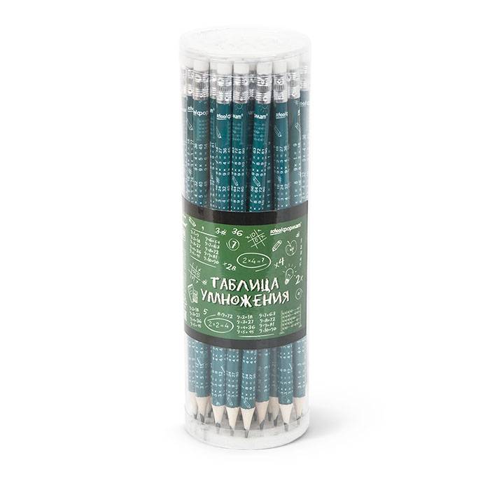 Карандаш чернографитный ТАБЛИЦА УМНОЖЕНИЯ НВ с ластиком заточенный круглый. КЧ-ТУ-HB