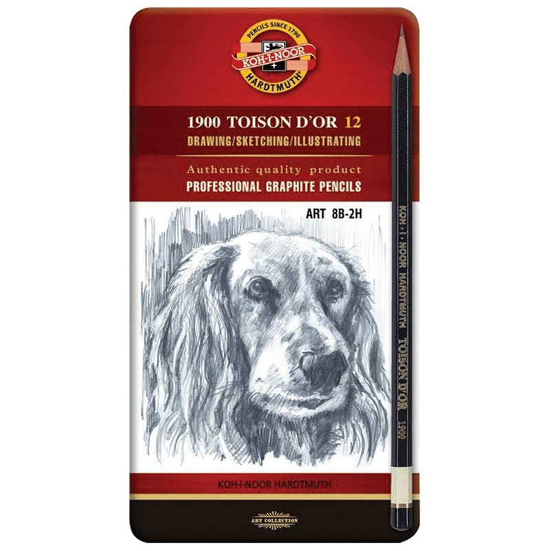 Набор карандашей ч/г Koh-I-Noor "Toison D'or", 12шт., 8B-2H, заточен., метал. пенал