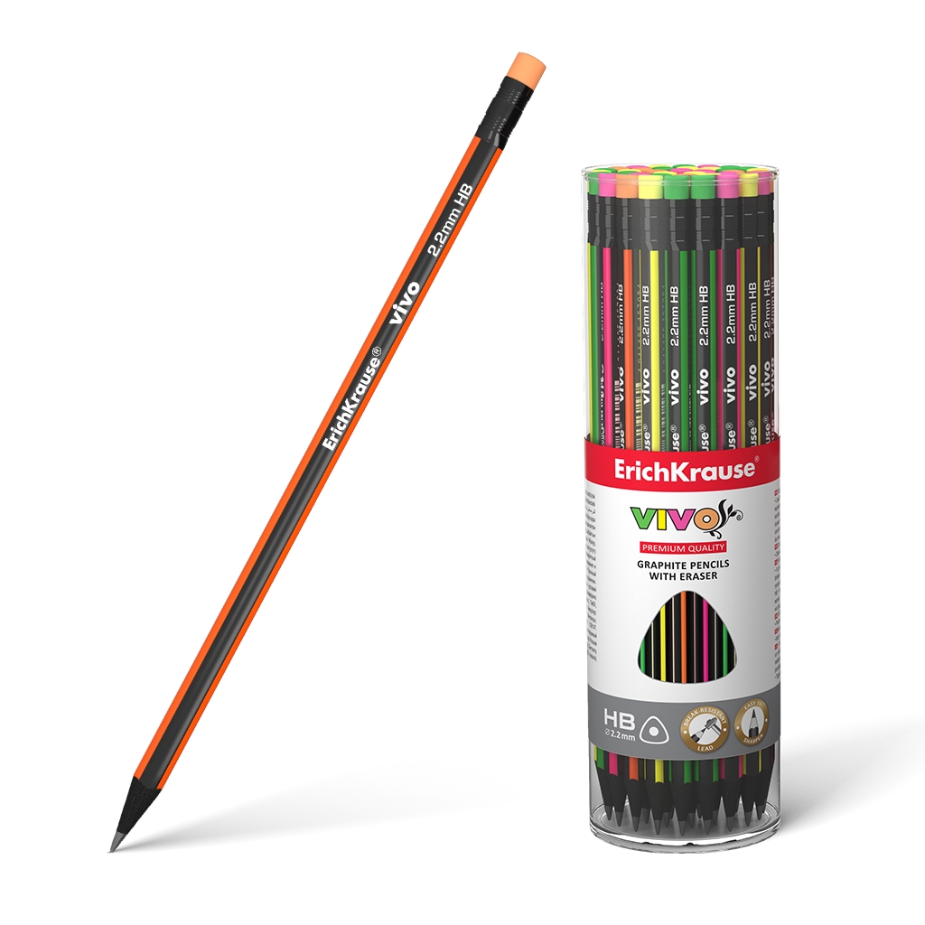 Чернографитный трехгранный карандаш с ластиком Erich Krause VIVO HB (в тубусе по 42 шт.)