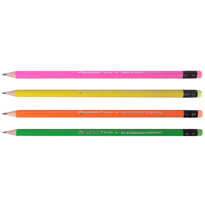 Карандаш ч/г пластиковый с ластиком "Darvish" HB корпус цветной неоновый круглый