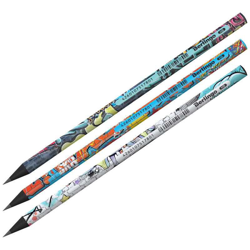 Чернографитный ударопрочный карандаш Berlingo "Street Art" из черного дерева, с заточкой. Матовое покрытие корпуса, дизайны ассорти. Не ломается при падении. Безопасен для детей, в случае разлома, не оставляет мелких и острых фрагментов. Подходит для черчения и рисования. Диаметр грифеля 2,2 мм, твердость HB, круглая форма, штрих-код на корпусе. Упаковка в прозрачную разъемную ПВХ-тубу с возможностью использования в качестве подставки.