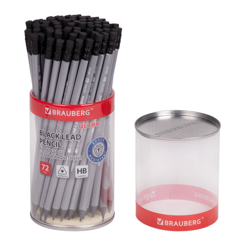 Карандаш чернографитный BRAUBERG "ULTRA" - первый помощник для выполнения различных заметок, позволяет сделать легкий набросок, быстрый стремительный рисунок или нарисовать полноценную картину. Используется повсеместно. Каждый карандаш имеет индивидуальный штрих-код. Легко затачивается, максимально устойчив к повреждениям. Изготовлен из чёрного пластика высокого качества. Имеет трехгранное сечение и оснащен ластиком. Карандаш длиной 185 мм обладает средней степенью твердости – HB. Цвет корпуса - серый. Поставляется заточенным в пластиковой тубе по 72 штуки.