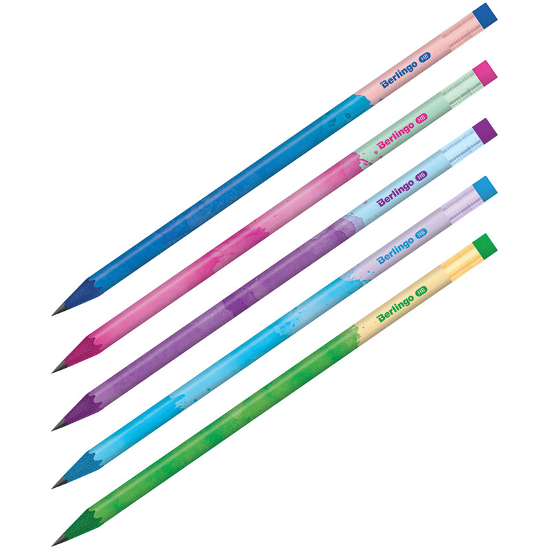 Карандаш чернографитный Berlingo "Heat", круглый, с ластиком, заточен., пластиковый, ассорти