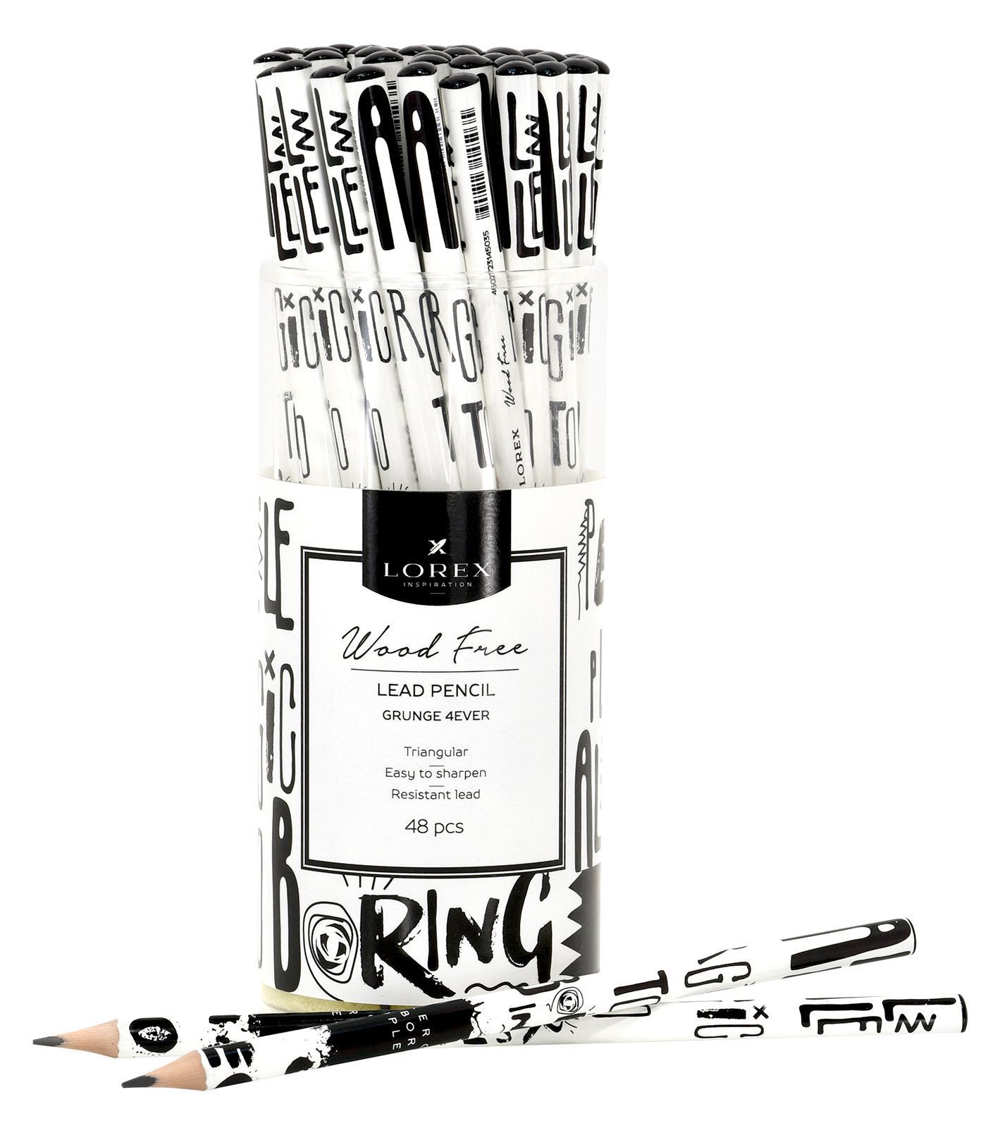 Карандаш чернографитный, пластик LOREX WOOD FREE GRUNGE 4EVER НВ заточенный трехгранный тубус принт на корпусе