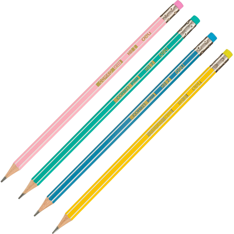 Карандаш чернографитный Deli EC011-HB шестигр., HB ластик, цвет АССОРТИ