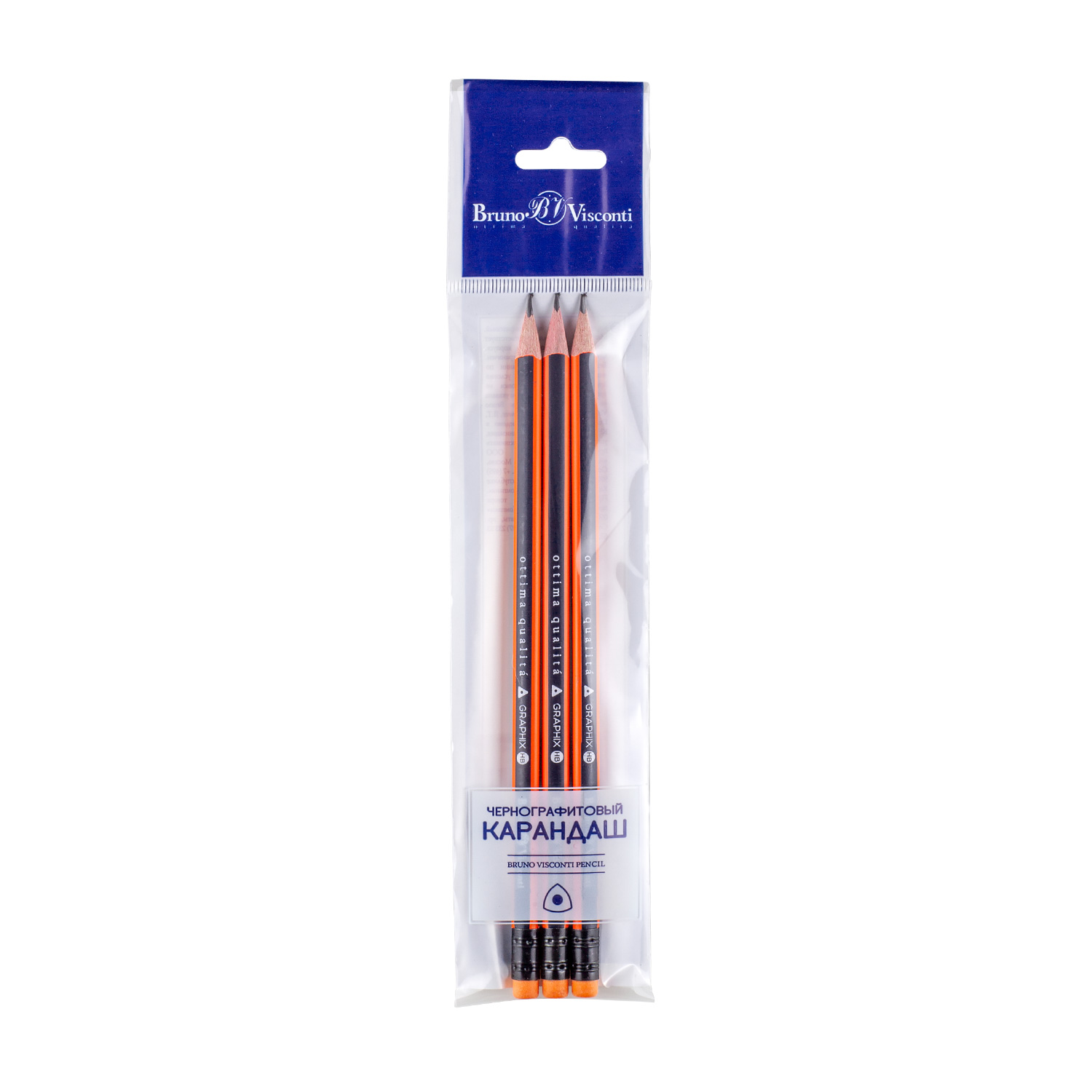 НАБОР ИЗ 3-Х КАРАНДАШЕЙ ЧЕРНОГРАФИТОВЫХ С ЛАСТИКОМ "Graphix" НВ
