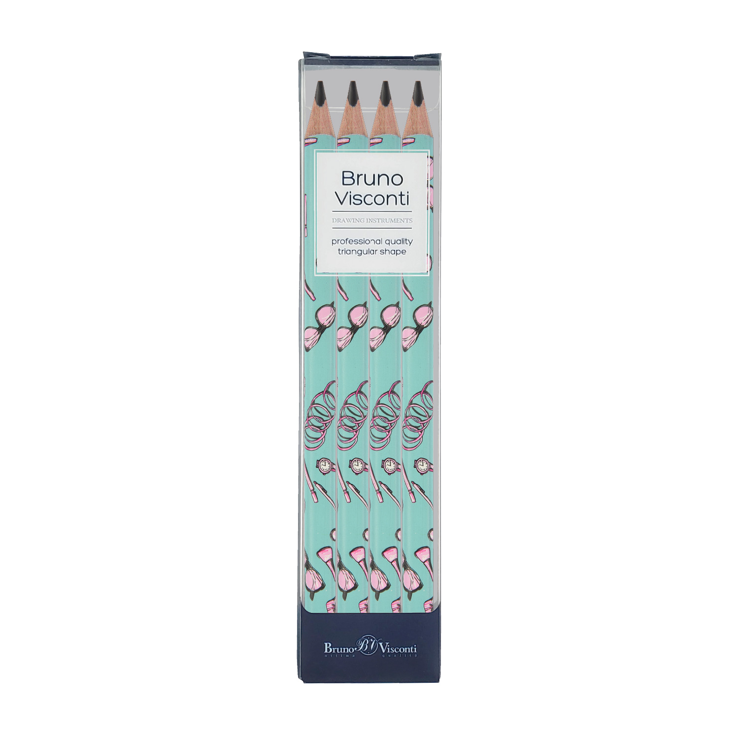 НАБОР ИЗ 4-Х КАРАНДАШЕЙ ЧЕРНОГРАФИТОВЫХ "HappyGraphix Jumbo. Life Style. Pink dream" 4В, 3.5 MM