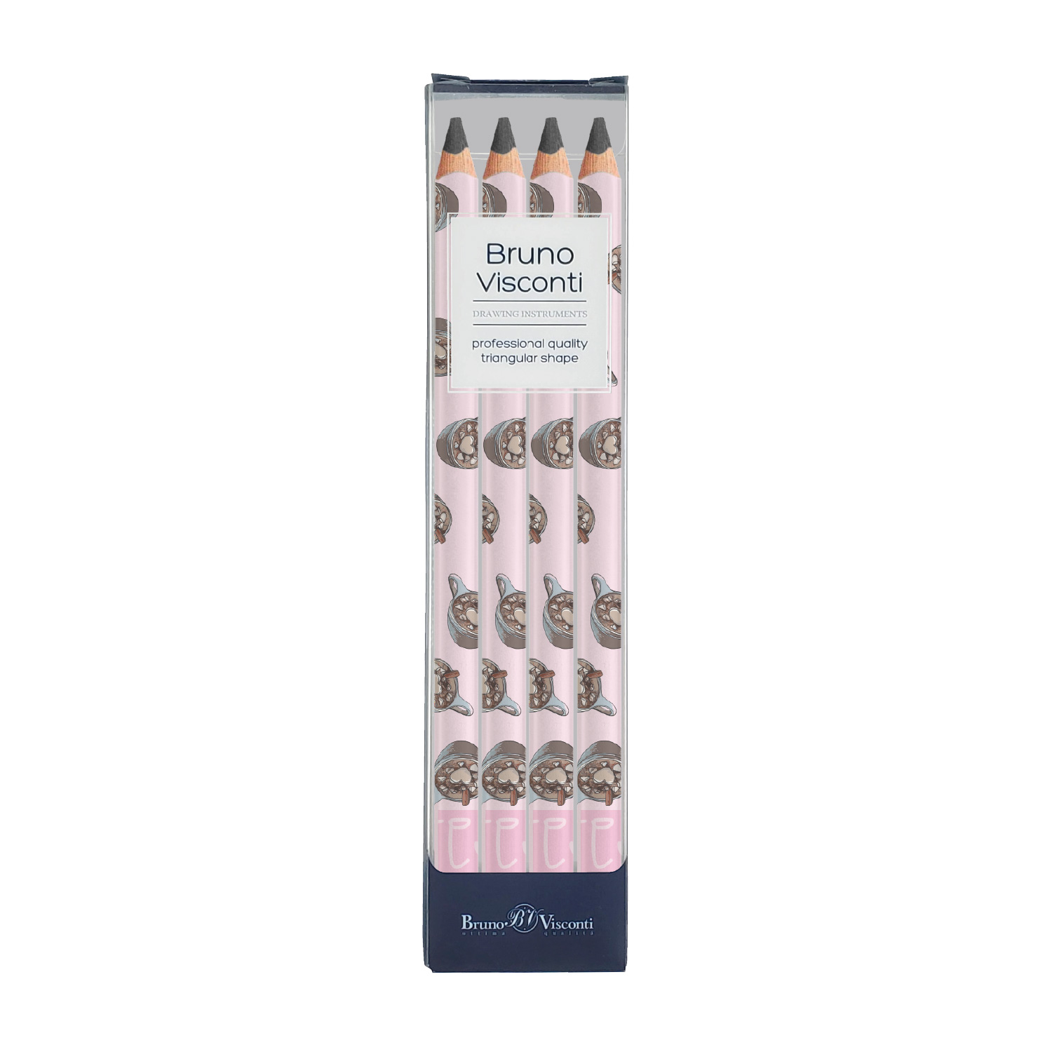 НАБОР ИЗ 4-Х КАРАНДАШЕЙ ЧЕРНОГРАФИТОВЫХ "HappyGraphix Jumbo. Кофемания. Горячий шоколад" 4В, 3.5 MM