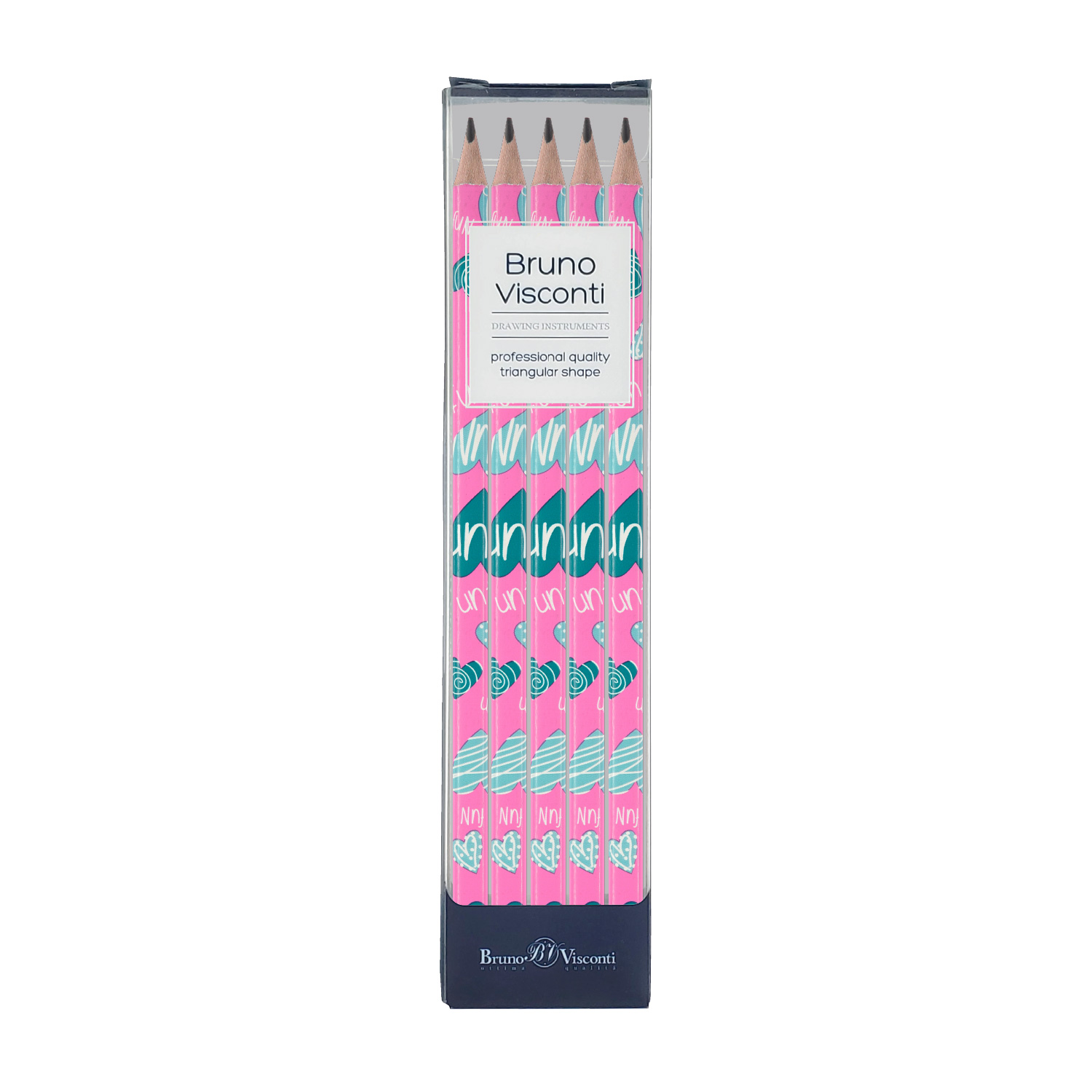 НАБОР ИЗ 5-И КАРАНДАШЕЙ ЧЕРНОГРАФИТОВЫХ "HappyGraphix. Сердечки.Эмоции.Бирюза" НВ