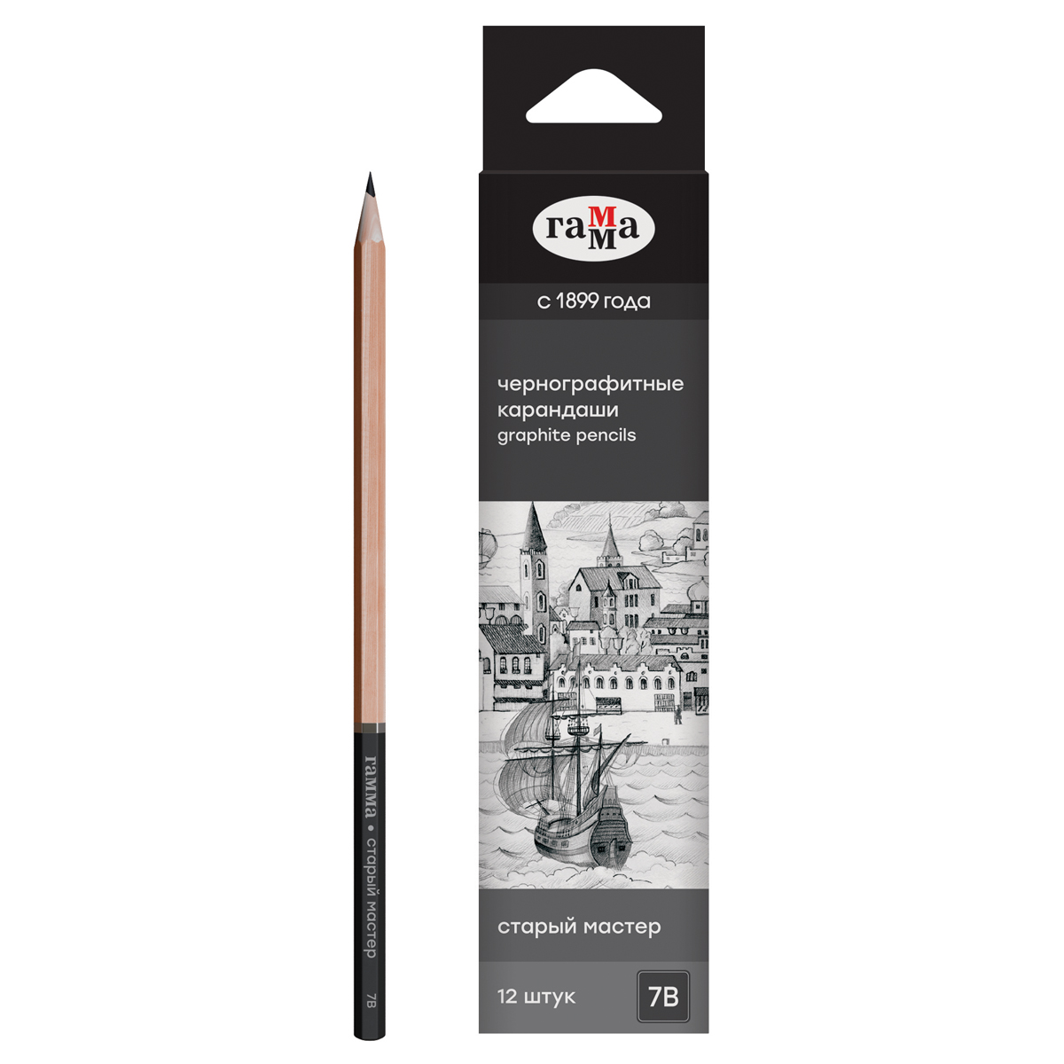 Карандаш чернографитный Гамма "Старый мастер", 7B, заточен.