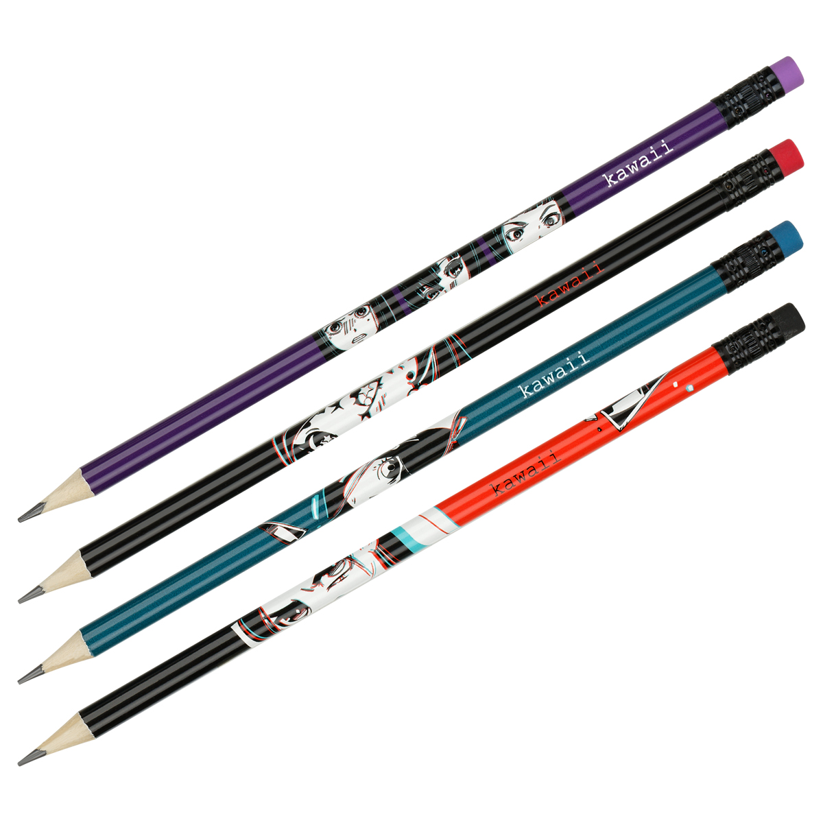 Карандаш чернографитный MESHU "Kawaii", HB, заточен., с печатью, с ластиком, ассорти, туба