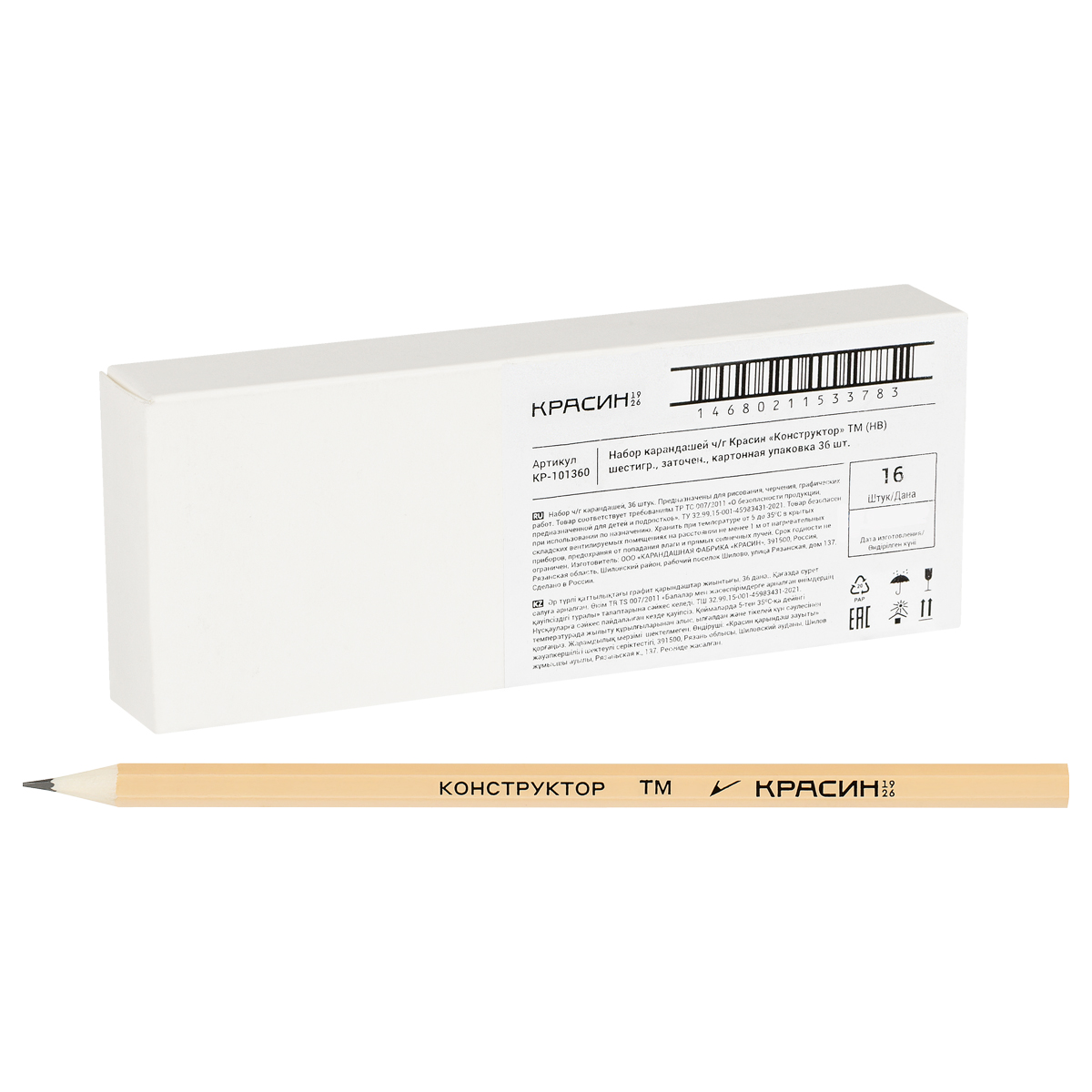 Набор карандашей ч/г Красин "Конструктор" ТМ (HB) 36шт., шестигр., заточен., картонная упаковка