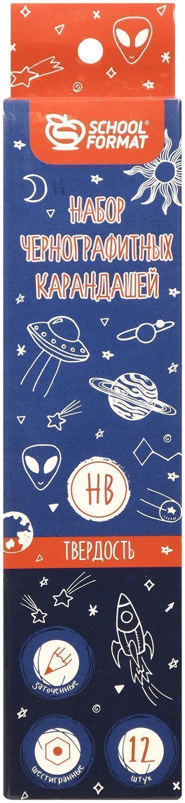 Набор чернографитных карандашей корпус пластик Schoolformat 12 шт HB заточенный трехгранные цвет. коробка с европодвесом