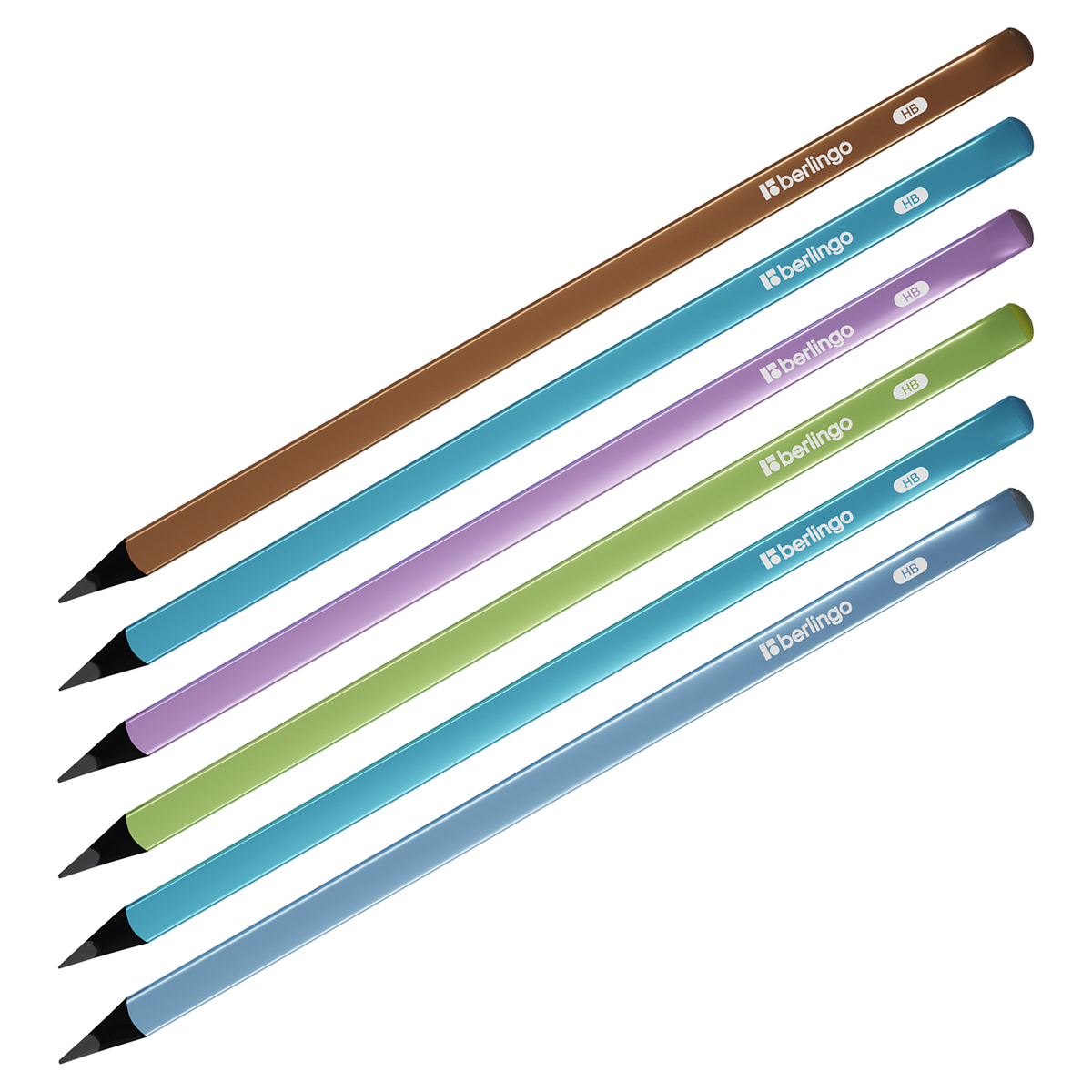 Карандаш чернографитный Berlingo "Metallic" HB, черное дерево, трехгранный, заточен., ассорти