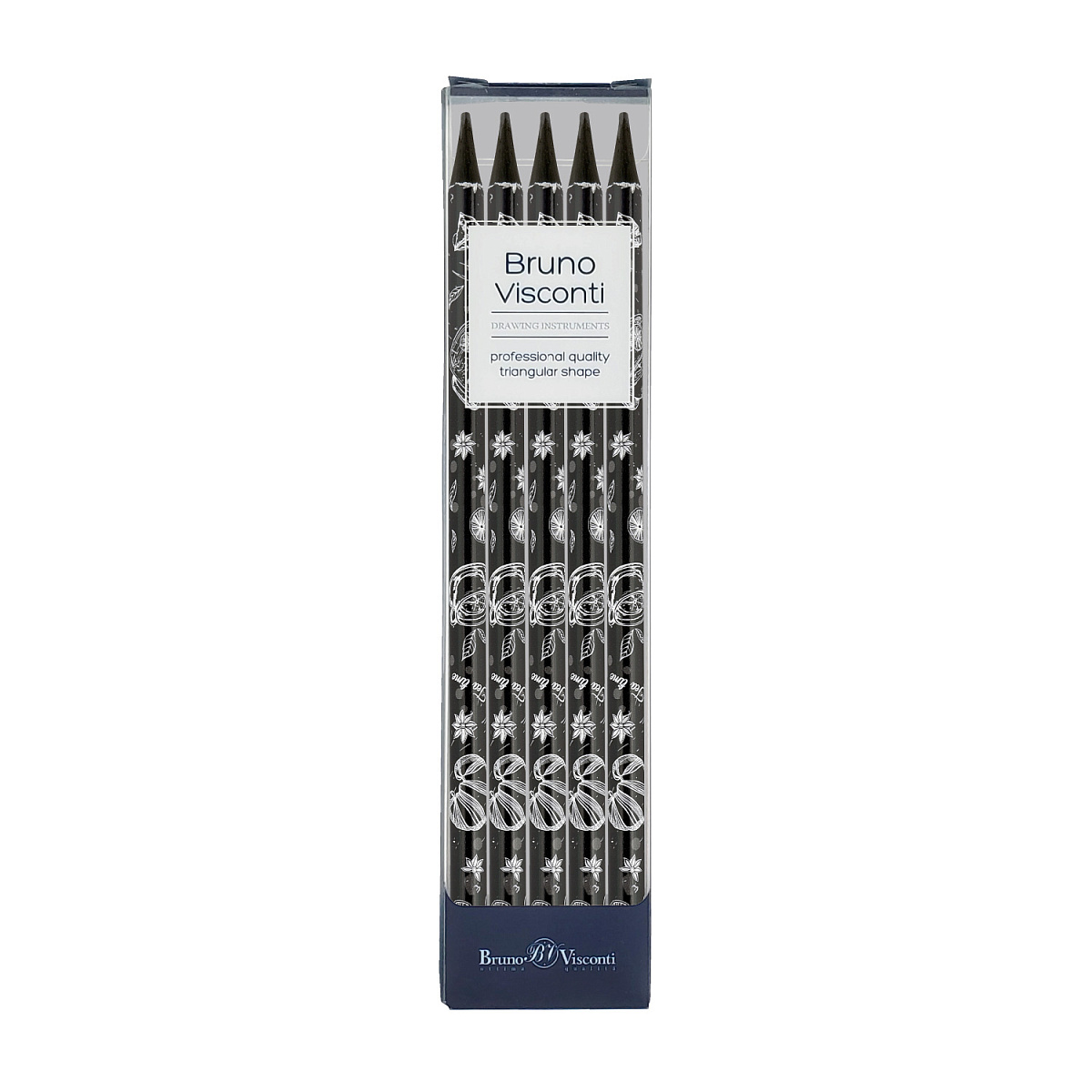 Карандаши чергнорафитовые от Bruno Visconti – для тех, кто ценит эргономичность, качество и выразительность. Корпус карандашей пластиковый и поэтому они обладают большей плотностью и прилеганию к стержню - они не бьются даже при падении, хорошо затачиваются. Карандаши имеют трехгранную форму, что обеспечивает их «правильный захват» тремя пальцами, снижая напряжение кисти. Такие карандаши не будут скатываться с поверхности стола. Грифель идеально отцентрован и проклеен, благодаря чему не ломается при падении карандаша и заточке. Имеет диаметр 3 мм, что увеличивает его срок службы. Оригинальные и ультрамодные принты на корпусе карандашей привлекают внимание, вызывают положительные эмоции.