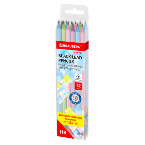 Набор карандашей чернографитных с ластиком BRAUBERG "PASTEL" 12 шт., HB, 181997