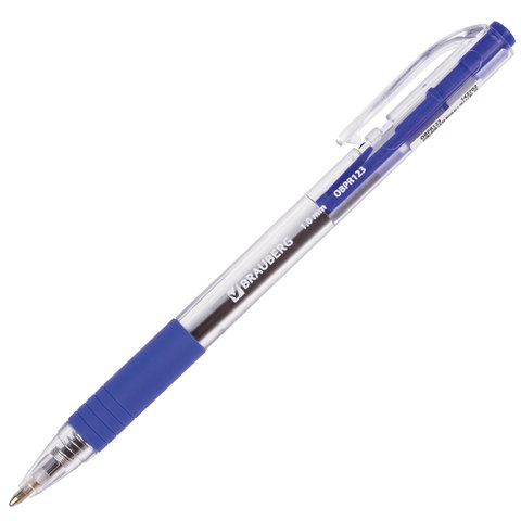 Ручка шариковая масляная автоматическая с грипом BRAUBERG "Click", СИНЯЯ, узел 1 мм, линия письма 0,5 мм, OBPR123
