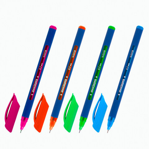 Трехгранные ручки ЮНЛАНДИЯ - это яркая серия качественных ручек, которые обеспечивают мягкое и комфортное письмо Шариковая ручка с корпусом ярких цветов ассорти. Специальные масляные чернила ультрапониженной вязкости и надежный пишущий узел 0,7 мм обеспечивают непревзойденно мягкое и комфортное письмо, а также ровную линию письма 0,35 мм. Эргономичный трехгранный прорезиненный корпус соответствует естественному захвату и способствует уменьшению напряжения на кисть руки. Ручка скользит по бумаге без каких-либо усилий. Цвет чернил - синий.