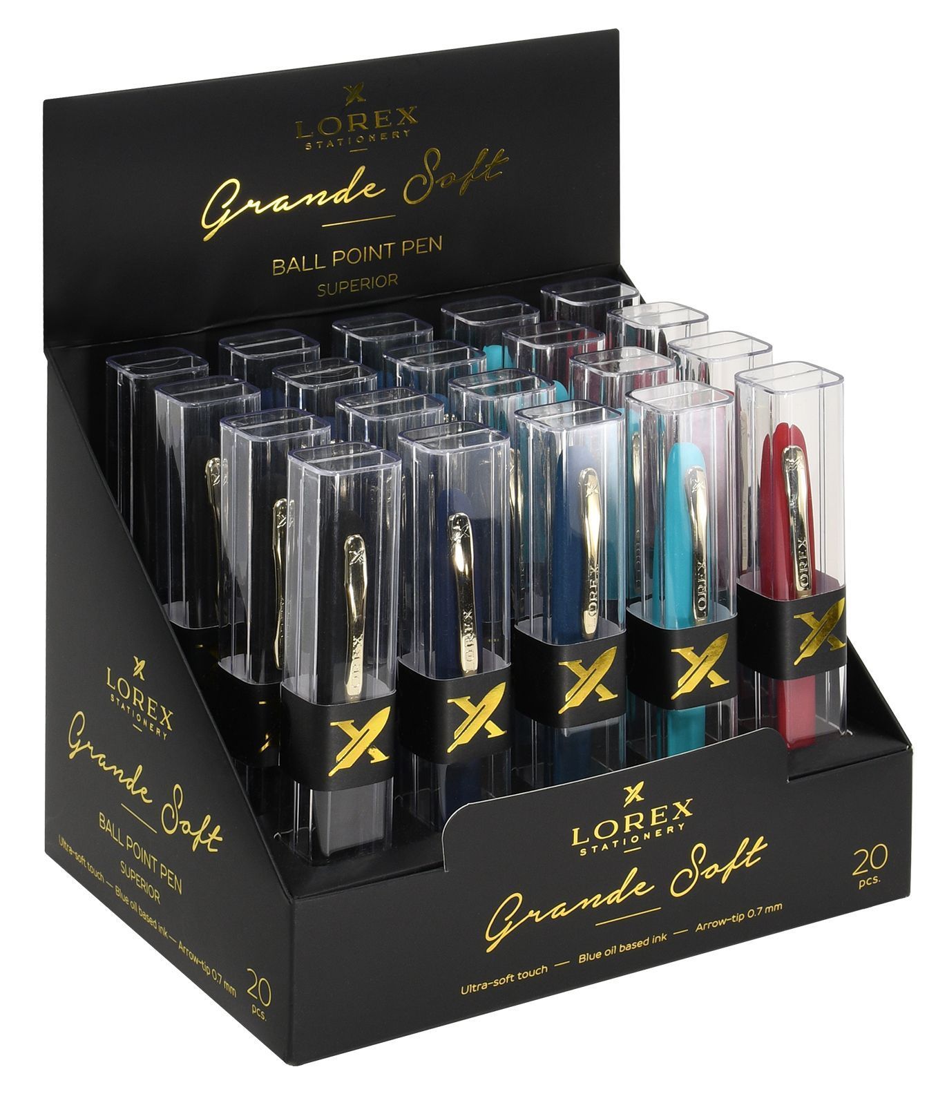 Ручка масляная LOREX GRANDE SOFT синий 0,7 мм ассорти прорез. корп. рез. грип золот. фольга