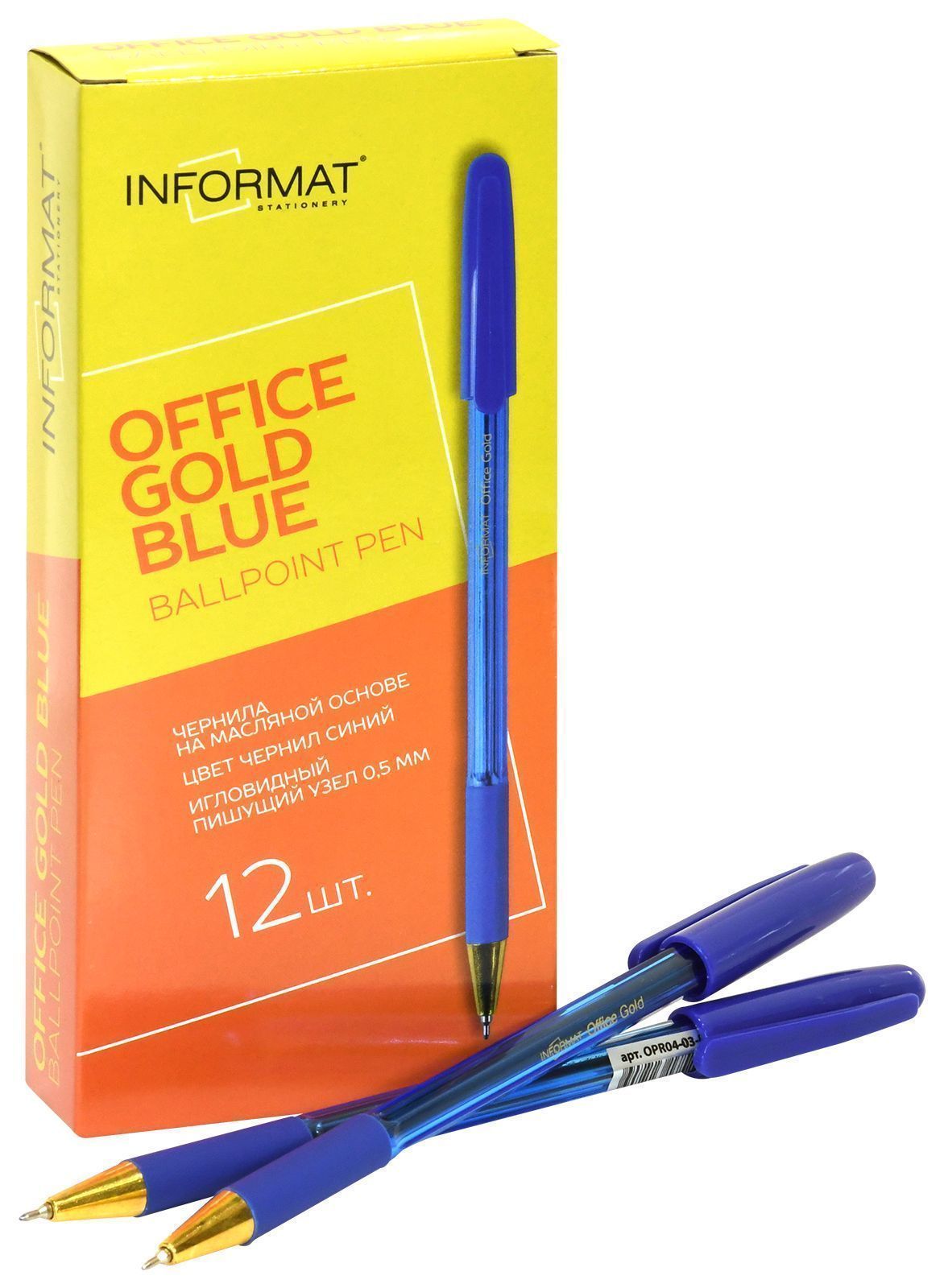 Ручка масляная INFORMAT Office Gold Blue синий 0,5 мм прозрачно-синий кругл. корп. грип игольчатый наконечник