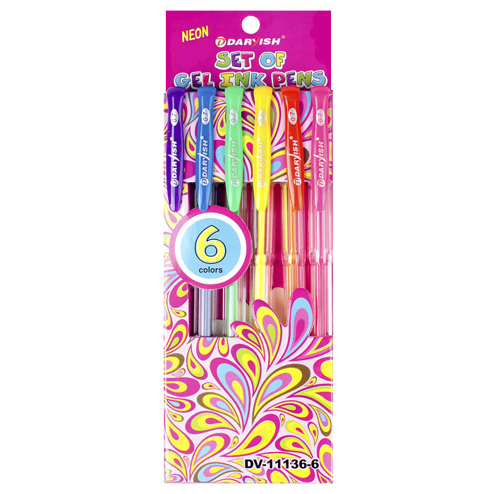 Набор ручек гел. 6цв. "Darvish" неон, корпус прозрачный Для письма в школе, офисе и дома. Пишущий узел-0,7мм Упаковка с европодвесом 18,5*6,5см