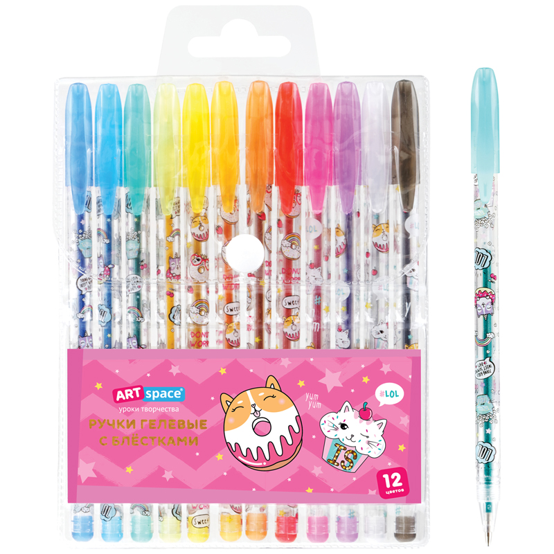 Набор гелевых ручек ArtSpace "Кот-сластена", 12цв., 1,0мм, с блестками, ПВХ чехол