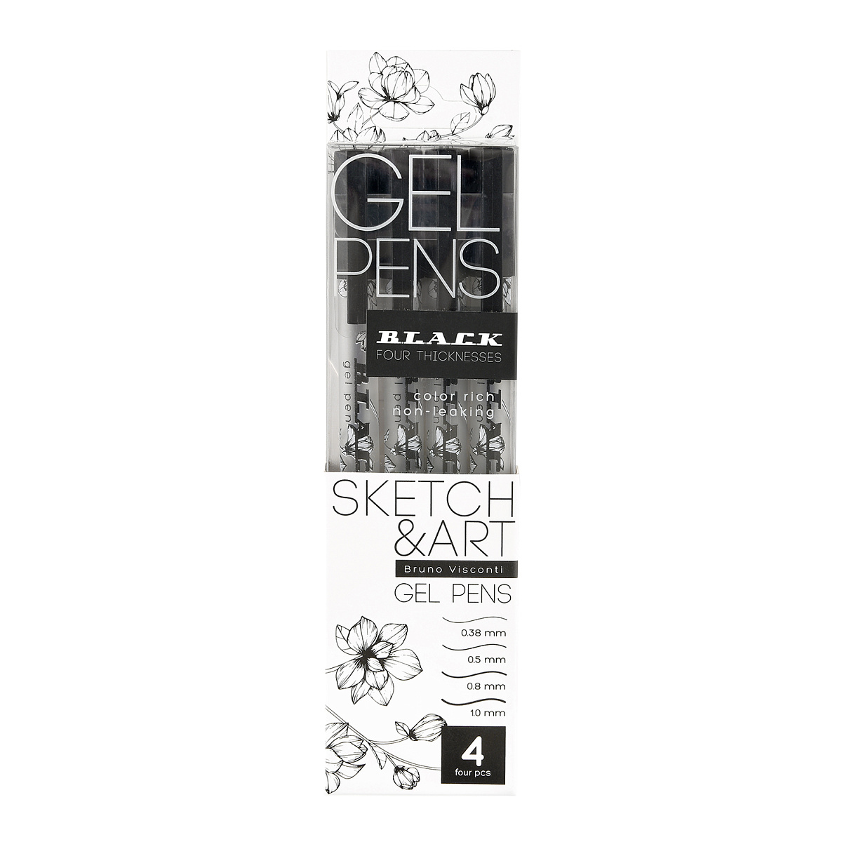 НАБОР ГЕЛЕВЫХ РУЧЕК Sketch&Art "Uni Write.BLACK", 0.38 мм, 0.5 мм, 0.8 мм, 1.0 мм