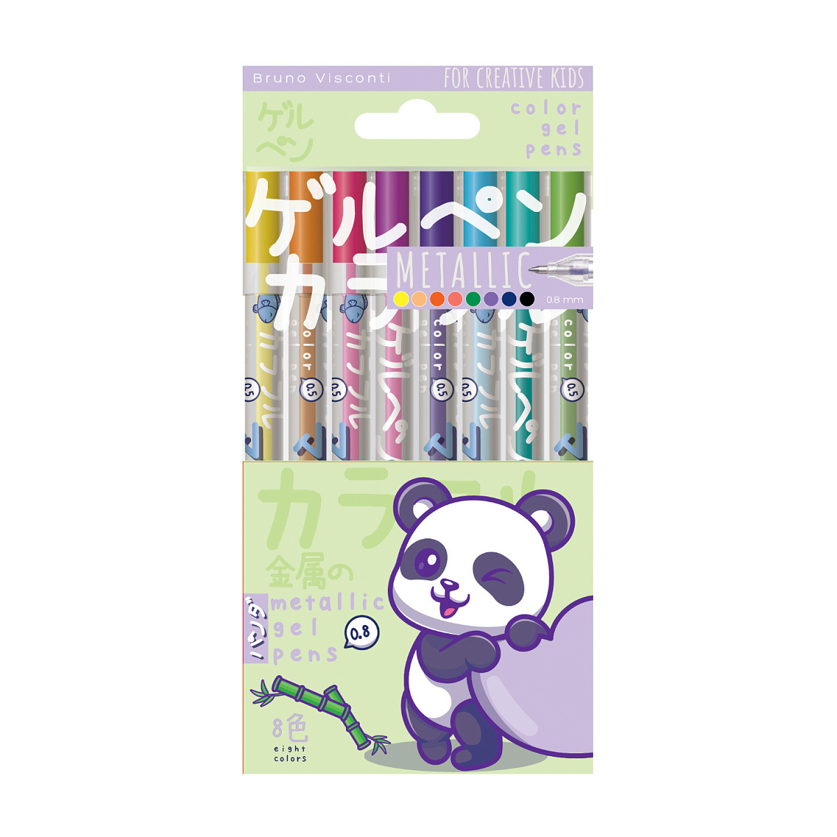 НАБОР ГЕЛЕВЫХ РУЧЕК "METALLIC. KAWAII ANIMALS", 0.8 мм, 8 цветов