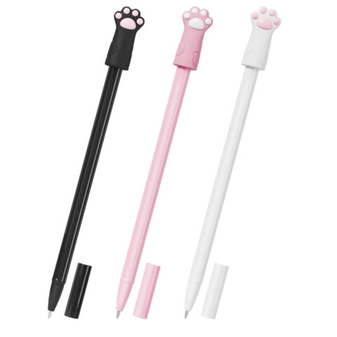 Ручка с топпером шариковая FUNSTER "CAT PAWS" – это не только надежный пишущий инструмент, но и стильный аксессуар. Масляные чернила обеспечат комфортный процесс письма, а очаровательный топпер в форме лапки сделает его по-настоящему увлекательным. Набор ручек FUNSTER "CAT PAWS" включает в себя 3 ручки с топперами в форме лапки в цветах ассорти: черный, розовый, белый. Благодаря чернилам на масляной основе ручка мягко и плавно скользит по бумаге, минимизируя нагрузку на руку. Стандартный наконечник диаметром 0,7 мм создает линию письма толщиной 0,35 мм. Синий цвет чернил универсален для любых целей, в том числе для ведения записей в школе и университете.