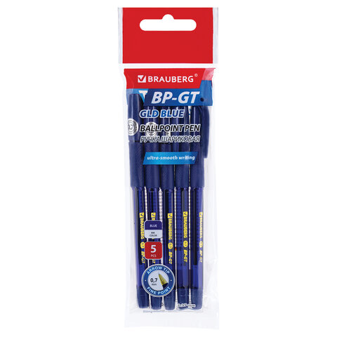 Ручки шариковые BRAUBERG BP-GT GLD BLUE, НАБОР 5 ШТУК, СИНИЕ, пишущий узел 0,7 мм, линия письма 0,35 мм, 144511