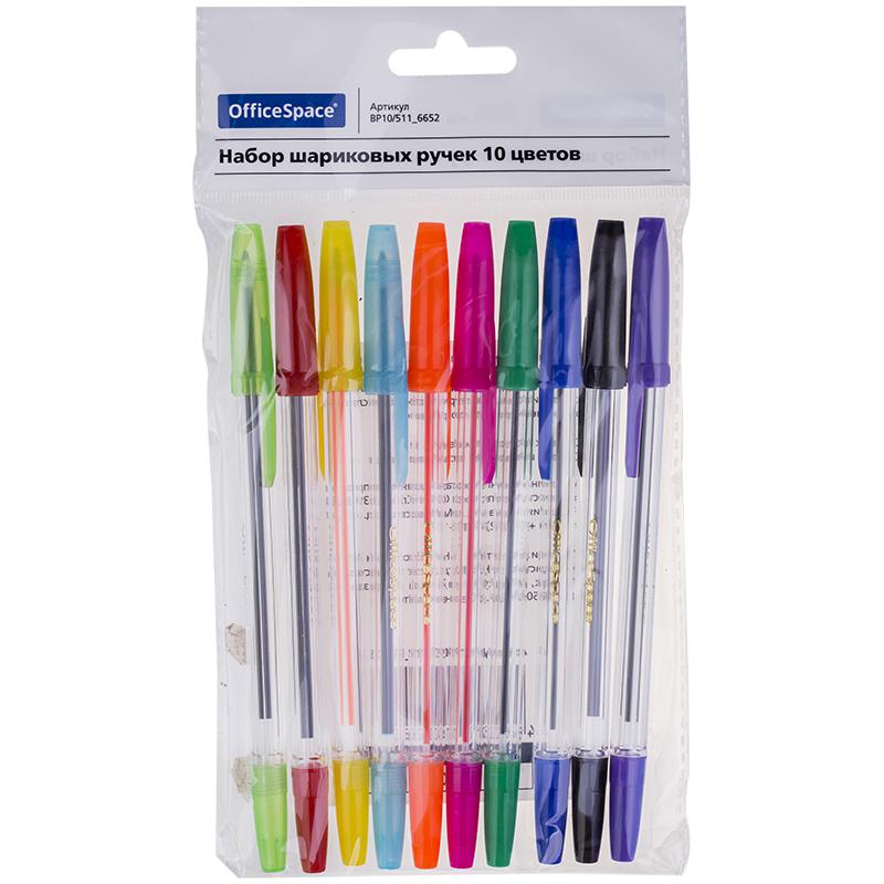 Набор шариковых ручек "OfficeSpace" 10шт, 10цв, 1мм, европодвес: BP10/511_6652 штр.: 4680211046521