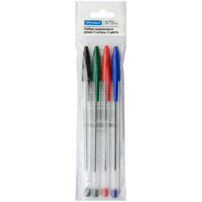 Набор шариковых ручек OfficeSpace, 4шт., 4цв., 0,7мм, европодвес BP4_15939